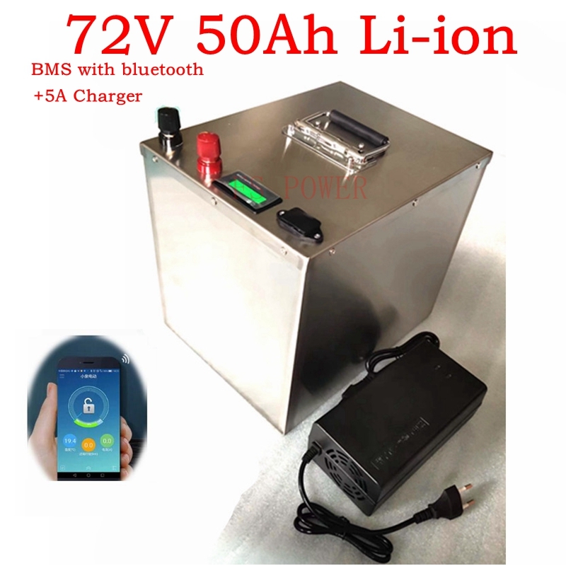 Waterproof 72V 50Ah lithium ion li-ion battery pack BMS 20S with bluetooth functions for scooter motorcycle ebike+10A Charger